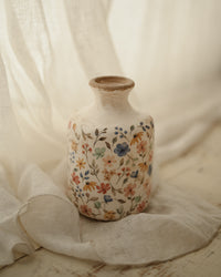 Esta primavera querrás tenerlo en tu estudio, porque en cualquier rincón quedará lucido. Este pequeño florero de cerámica con estampado de flores de colores es delicado, sutil y monísimo!