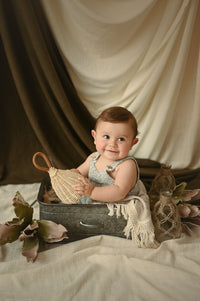 Industrial y con mucha personalidad. La caja cuadrada de latón sirve para los más peques y también para las sesiones sitter.