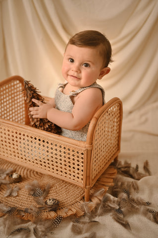 Enamoradas de esta cama cannage - rejilla en dos colores, que además sirve tanto para tus sesiones newborn como para bebés más mayores. Combínala con los colores y texturas que quieras y dale el toque boho que buscabas a tu sesión.