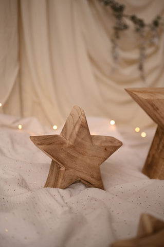 Hermosa estrella decorativa en madera. Perfecta para crear escenas mágicas y celestiales en sesiones fotográficas de bebés y recién nacidos. Ideal para decoración navideña y temática de ensueño.