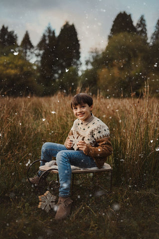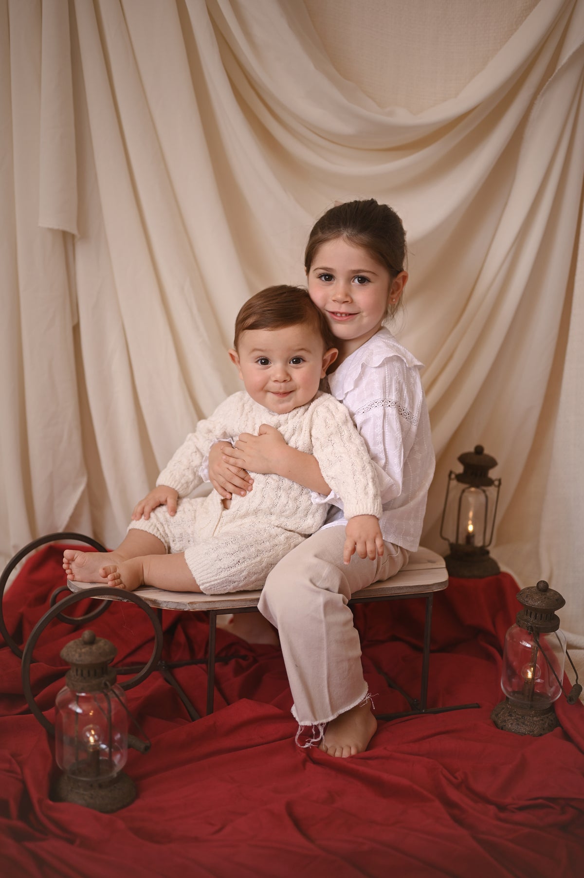 Encantador trineo decorativo en madera natural. Perfecto para crear escenas navideñas mágicas en sesiones fotográficas de bebés y recién nacidos. Ideal para decoración invernal y temática de Navidad.