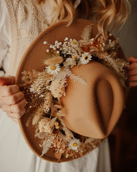 Todas tus pre-mamás querrán ponérselo en su sesión de embarazo. Este sombrero boho con flores en tono beige está hecho artesanalmente. Horas de trabajo y mucha delicadeza para crear una pieza única que podrás lucir en tus sesiones.
